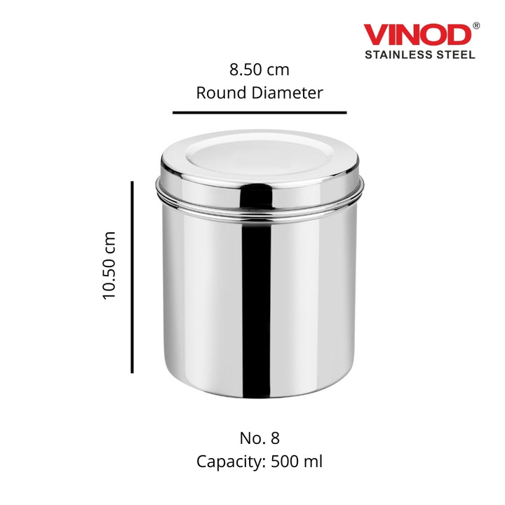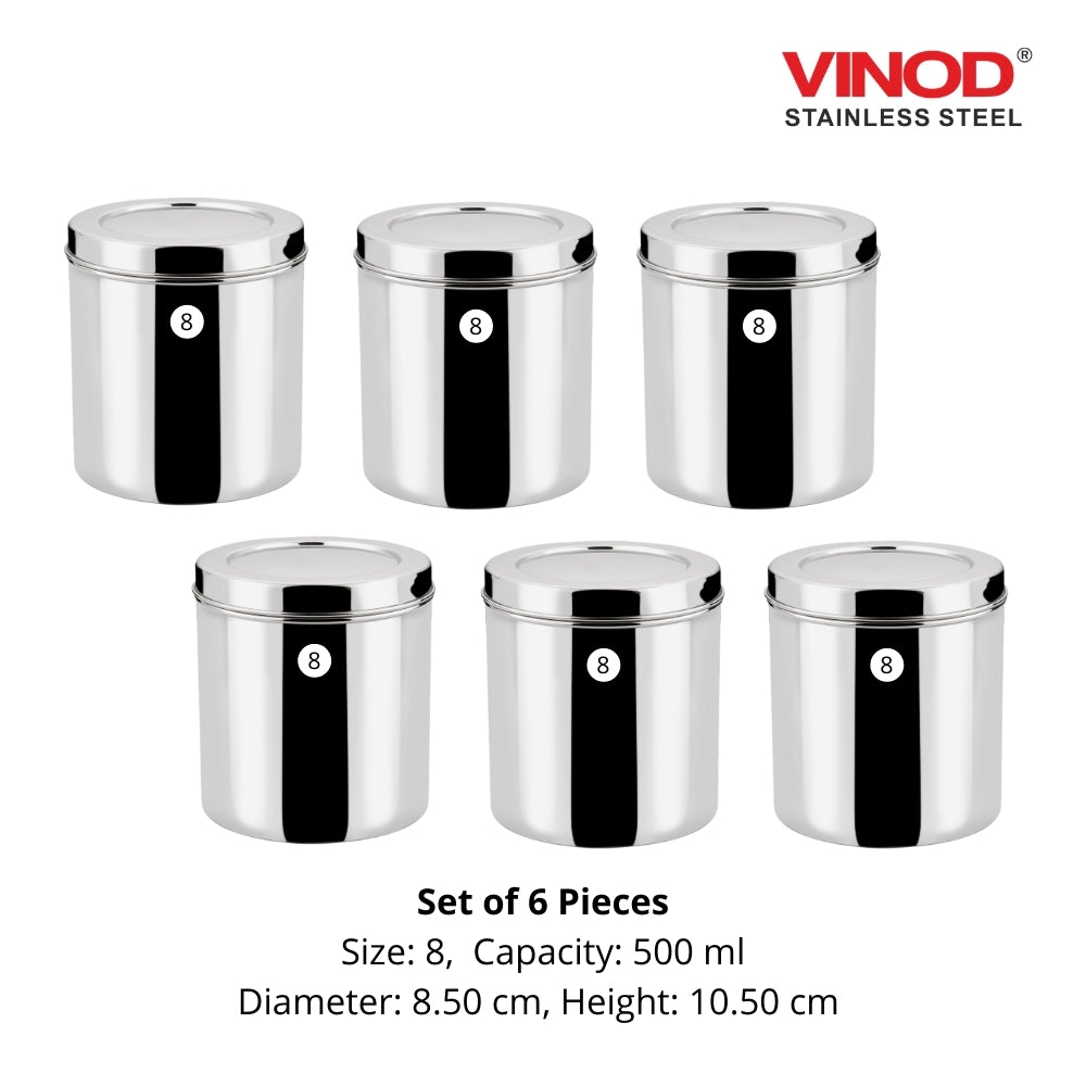 Vinod Stainless Steel Deep Dabba 500 ml/ No.8 – Set of 6 pieces, Airtight Steel Containers