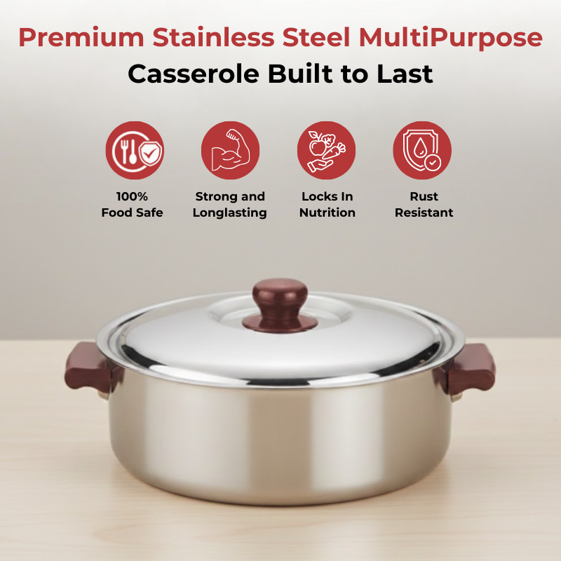 Vinod Stainless Steel Multipurpose Hot Casserole with lid, 2800 ml Capacity