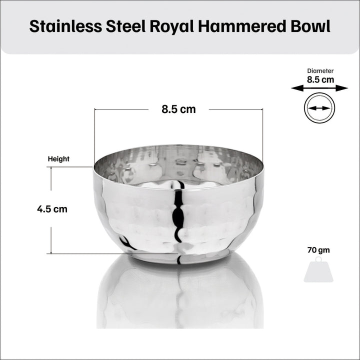 Vinod Stainless Steel Royal Hammered Bowl with capacity 100 ml set of 6 - Product Dimension: