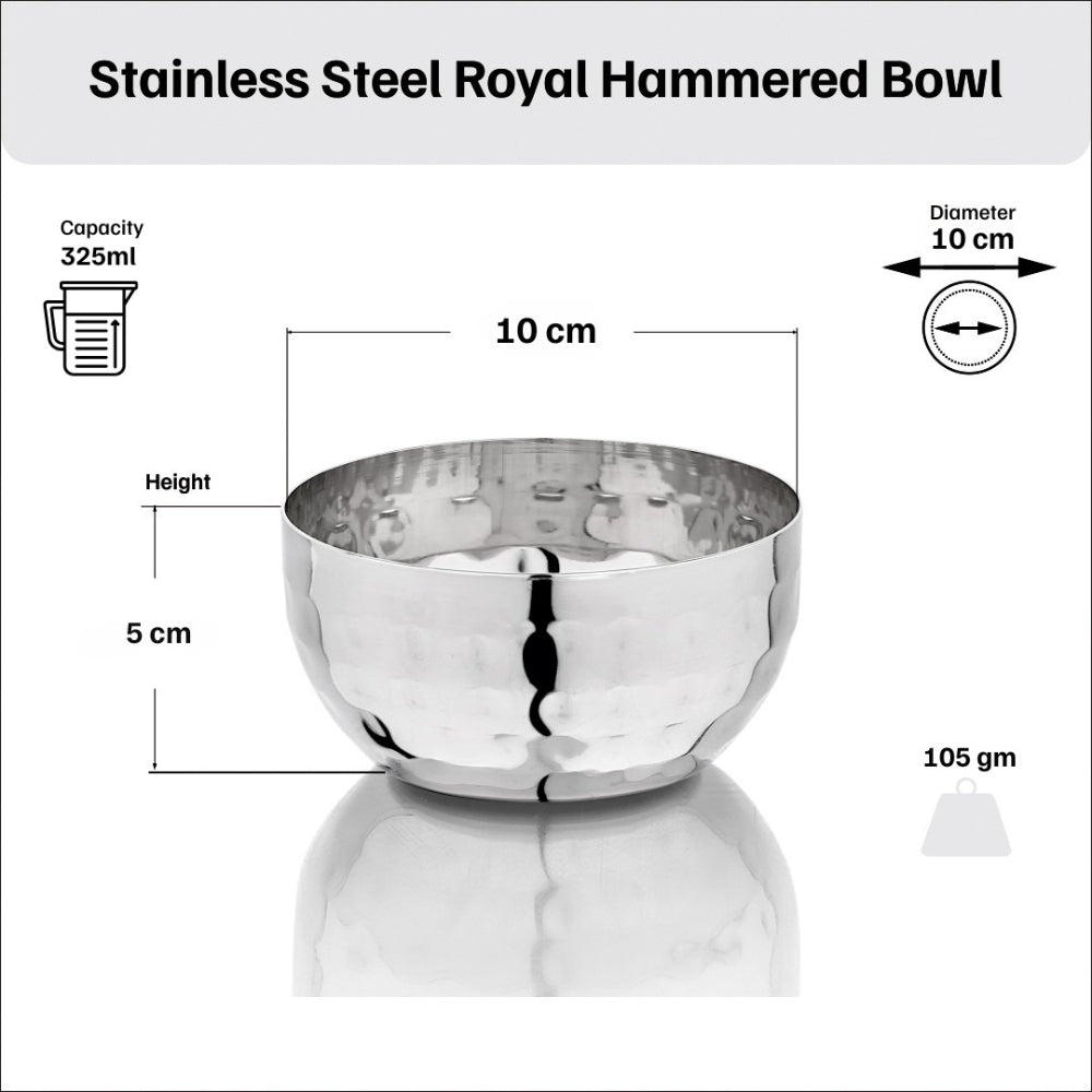 Vinod Stainless Steel Royal Hammered Bowl, Set of 6 Piece, Capacity 325 ml, No. 6