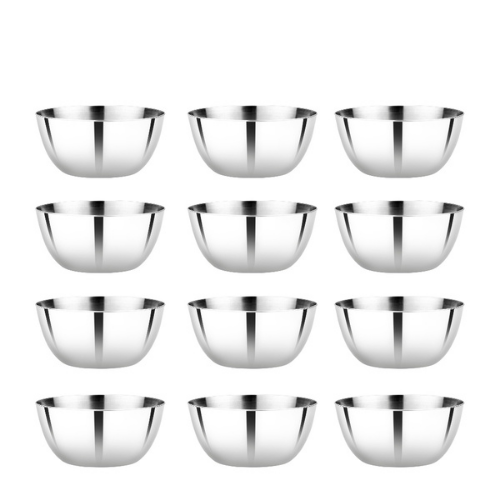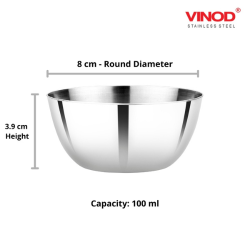 • Pack Content: 12 Pcs Vinod Stainless Steel Two Tone Bowl, Capacity of each vati 100 ml, Vati Diameter – 8 cms , Height – 3.9 cm